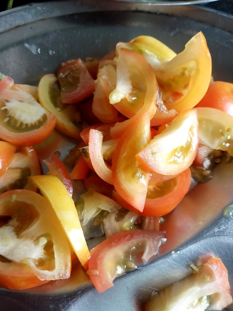 Adding black pepper and salt as per taste to tomato increases its taste.