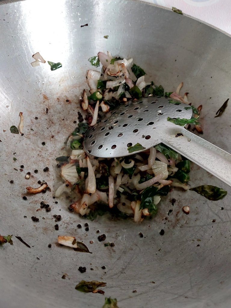 और मैंने उसे कड़ी पत्ता, राई, हल्दी, पीसी मिर्च, हींग, नमक डाल कर, उसमे थोड़े से कच्ची मूंगफली को पीस कर मिला दिया