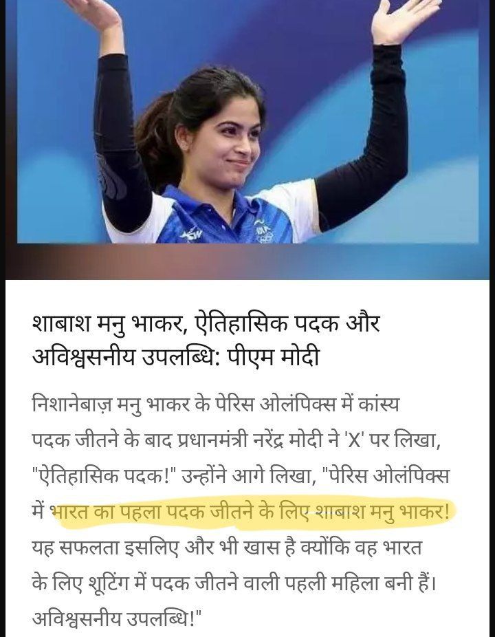 पेरिस ऑलंपिक मे पहला कास्य पदक